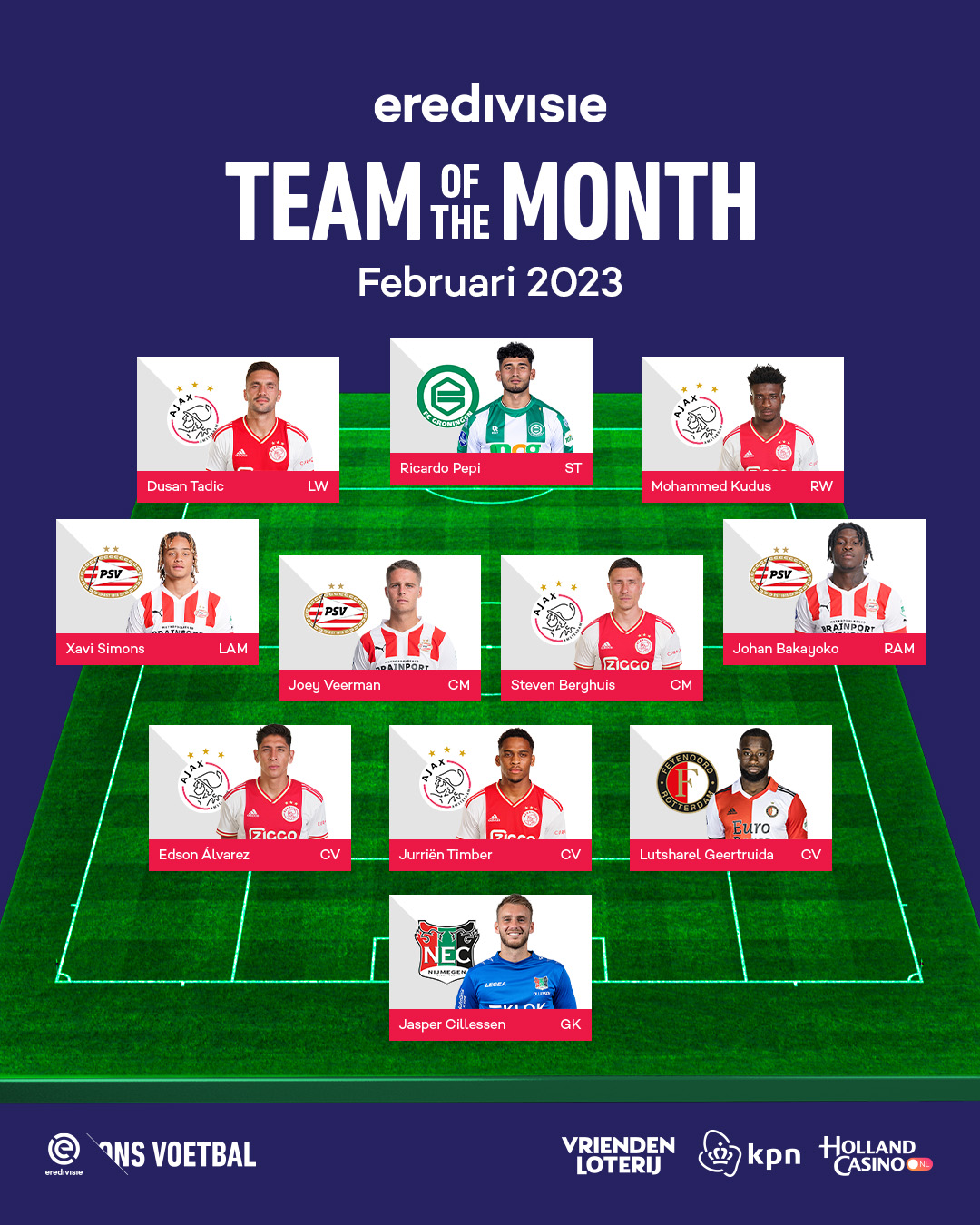 Eredivisie On Twitter ππ₯ππππ©ππ¦ππ π§πππ π’π π§ππ π π’π‘π§π Gebaseerd Op Basis Van πΆπ»π±πΆππΆπ±ππ²πΉπ² Spelersstatistieken En Stemmen Van Fans Alleen Spelers Met Minstens 60 Speelminuten Komen In Aanmerking Voor Het Elftal